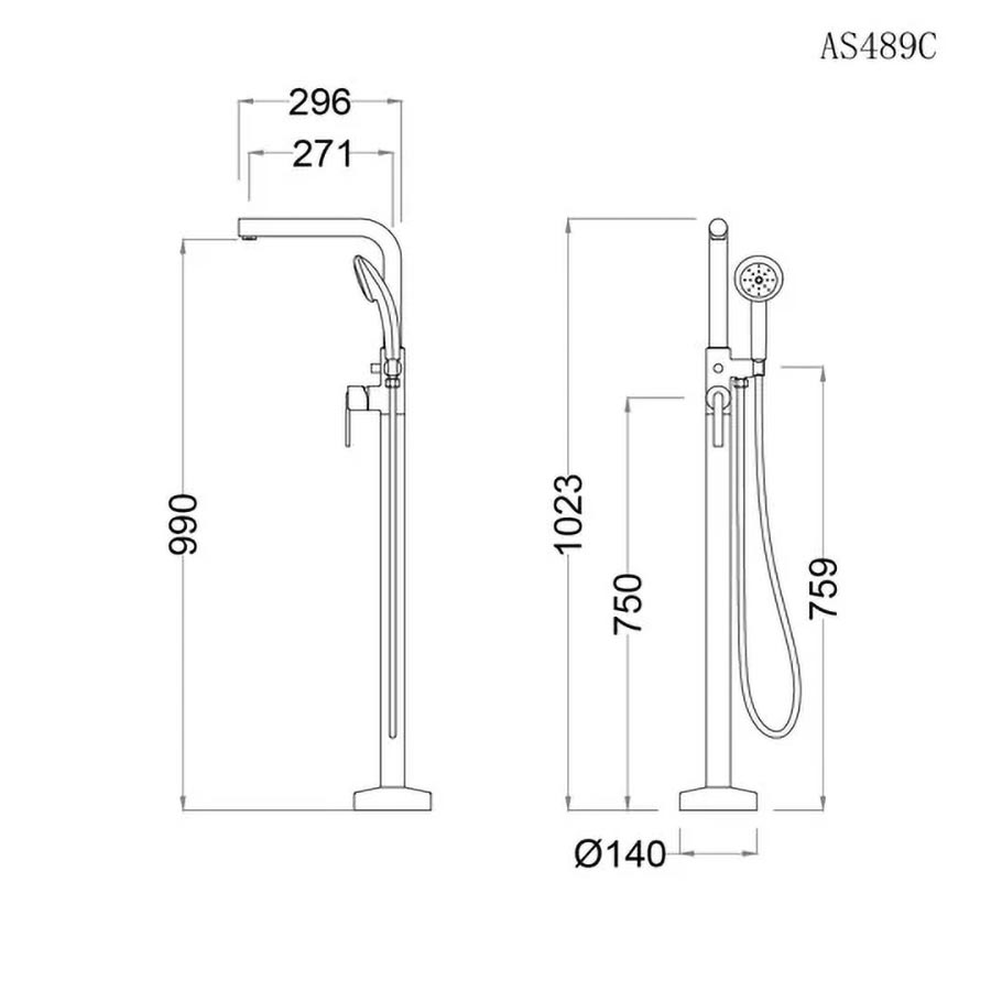 Bản vẽ kích thước CAESAR AS489C – Vòi sen xả bồn tắm đặt sàn